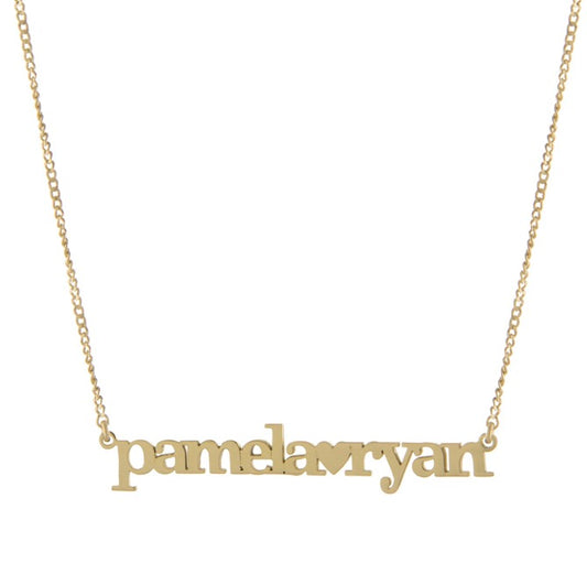 Mary Kate Double Enamel Heart CZ Nameplate Necklace