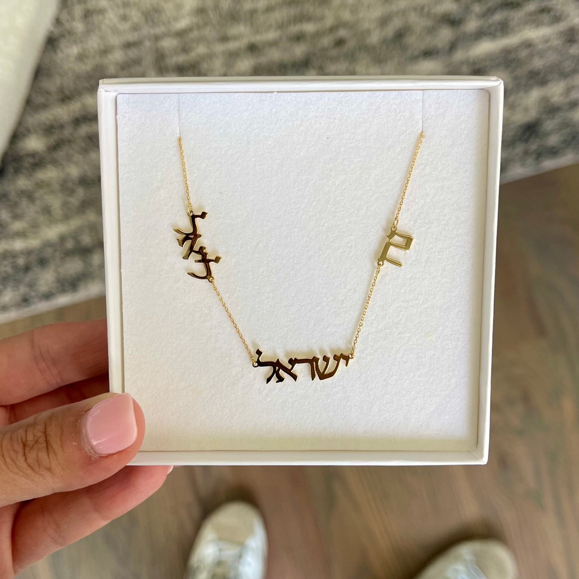 Celebrate the names that mean the most with our 14k Hebrew Name Necklace, now customizable with up to 7 names. Perfect for mothers, grandmothers, or anyone who wants to keep their loved ones close, this elegant piece features names in beautiful Hebrew script. Crafted from solid 14k gold, and available in both 14k yellow gold and white gold, it's designed to last and be cherished for years. Whether you're celebrating family or commemorating special moments, this timeless personalized gift makes the perfect Mother’s Day gift, anniversary gift or birthday gift.