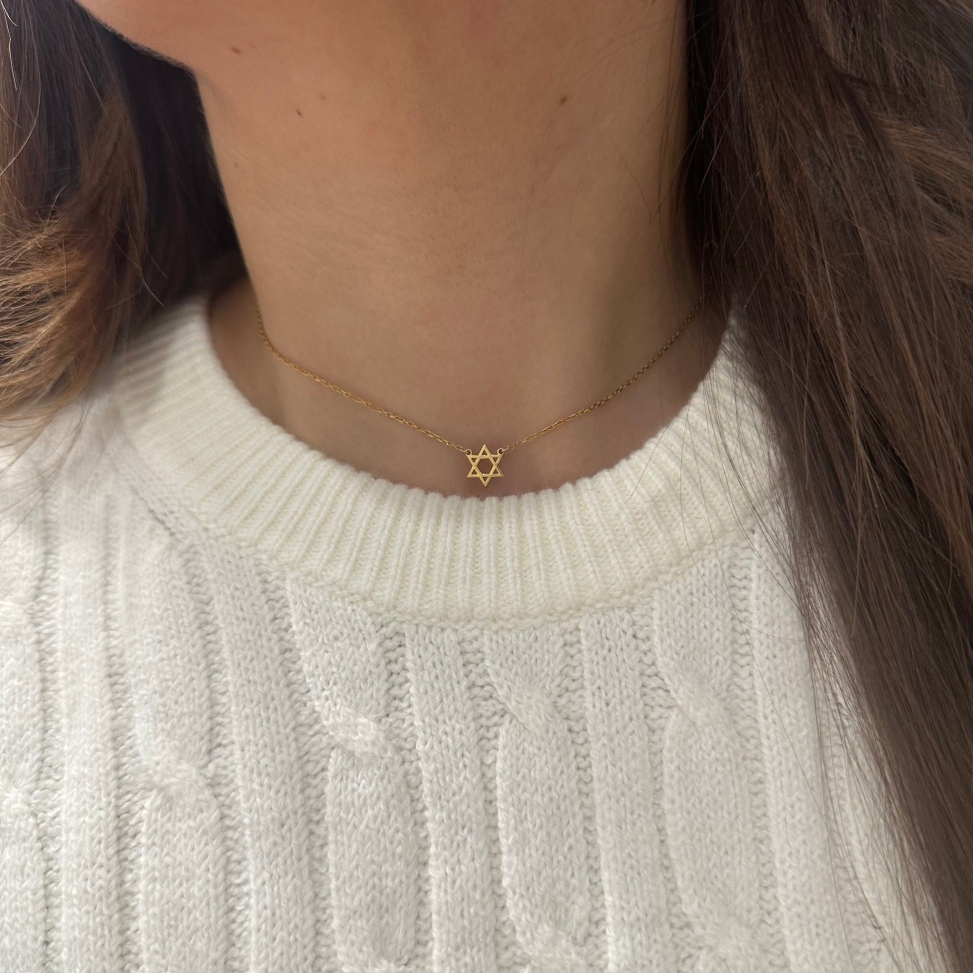 Celebrate faith and tradition with this 14k Gold Jewish Star Necklace, available in stunning yellow or white gold. Designed with timeless elegance and crafted from solid 14k gold, this piece is built to last, staying tarnish-free and water-resistant for years to come. Perfect as a gift for her, a bat mitzvah gift, or a meaningful everyday accessory, this necklace is both symbolic and stylish. Wear your heritage with pride.