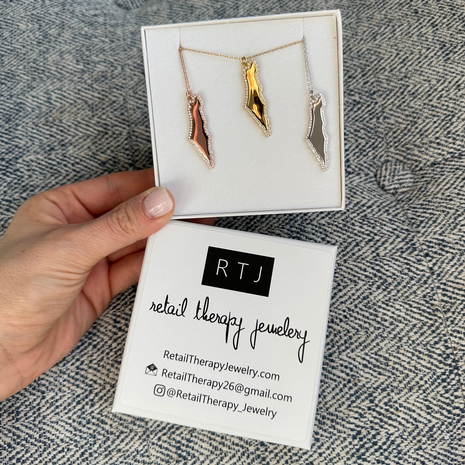 This necklace is carefully crafted from high-quality materials, featuring the map of Israel with a CZ border. It's more than just jewelry; it's a statement of your beliefs