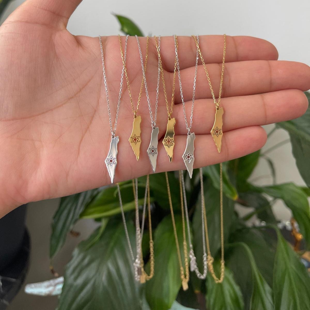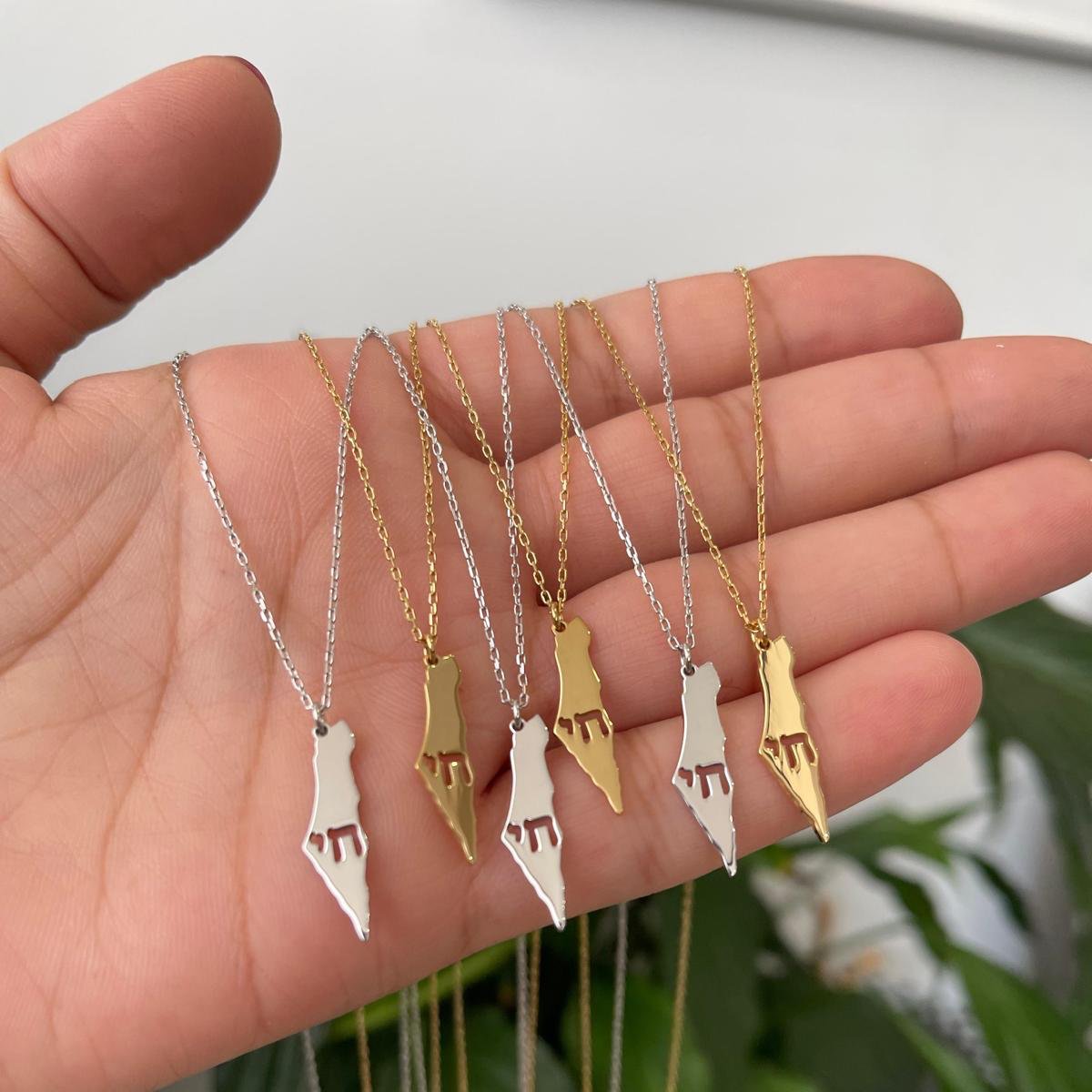 This necklace is carefully crafted from high-quality materials, featuring the map of Israel with your choice of a hollowed out Magen David (Jewish Star) on the center or the word life in Hebrew - "Chai". It's more than just jewelry; it's a statement of your beliefs