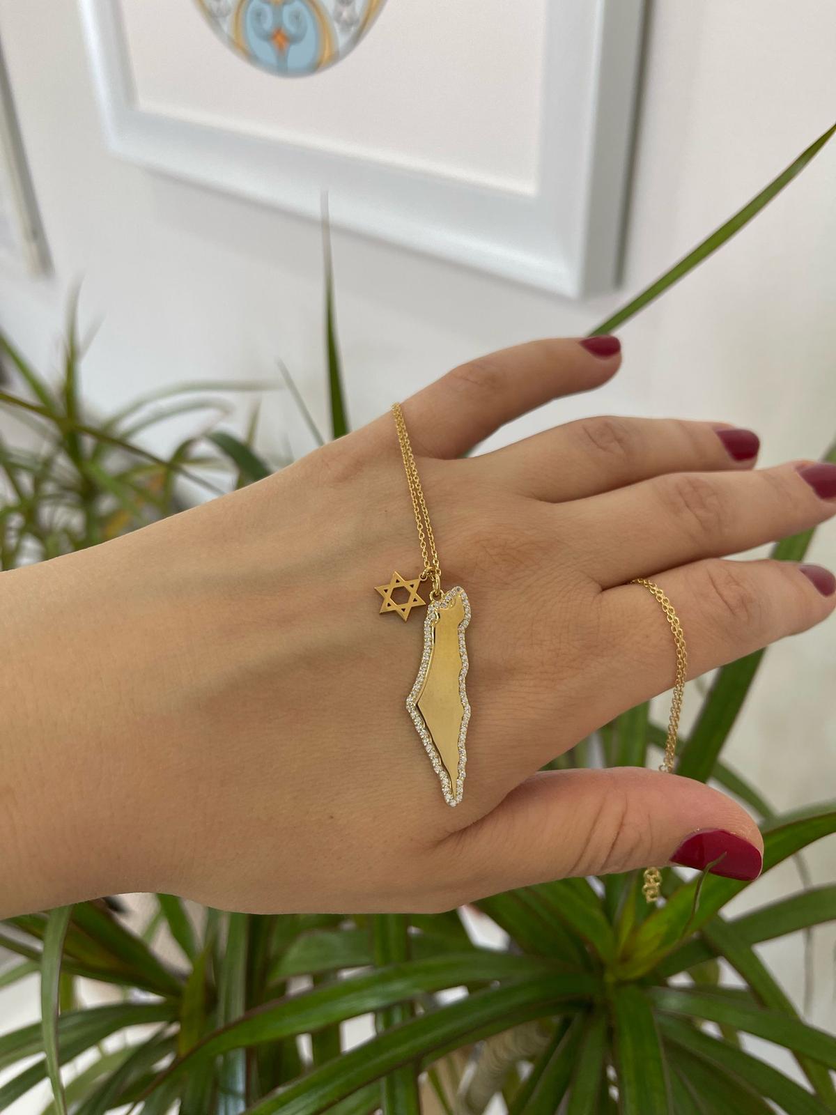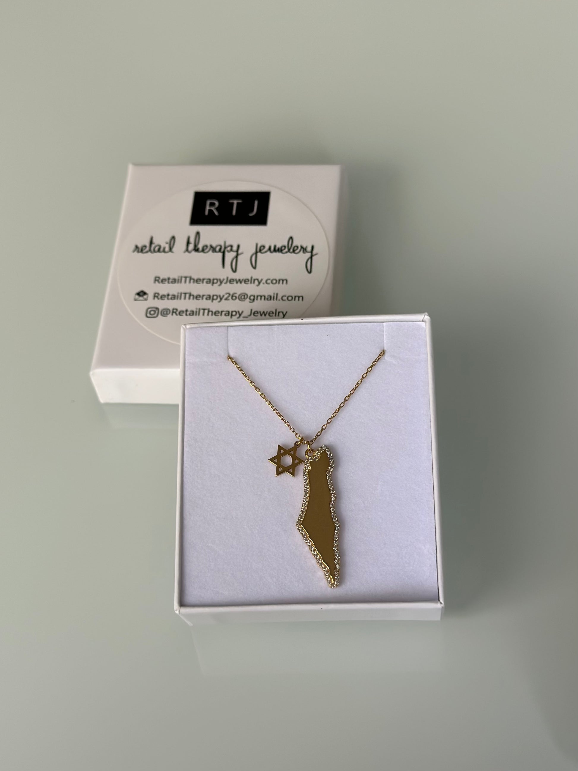 This necklace is carefully crafted from high-quality materials, featuring the map of Israel with a CZ border with a dainty Magen David (Jewish Star) on the chain. It's more than just jewelry; it's a statement of your beliefs
