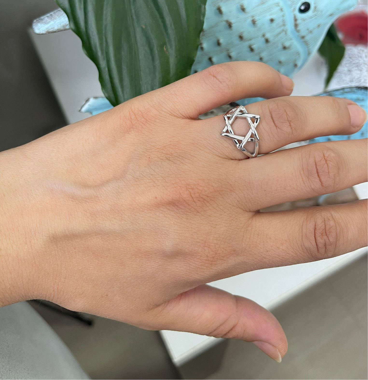 A variation of our Jewish Star Ring – a symbol of faith and tradition reimagined with contemporary flair. Crafted with care, this ring beautifully captures the essence of the Star of David, creating a timeless piece that speaks volumes. Whether as a personal reminder or a meaningful gift, let this ring be a reflection of your faith and identity. Embrace your heritage with style. Shop now and wear your beliefs with pride.