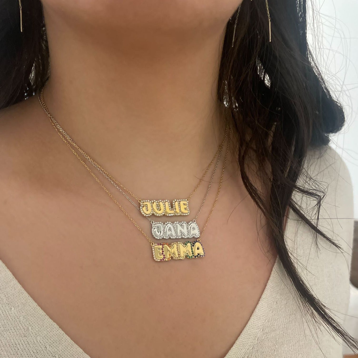 A personalized piece that combines sterling silver's enduring quality with bold bubble letters. Meticulously designed, this dainty necklace captures your individuality and love for glamour.