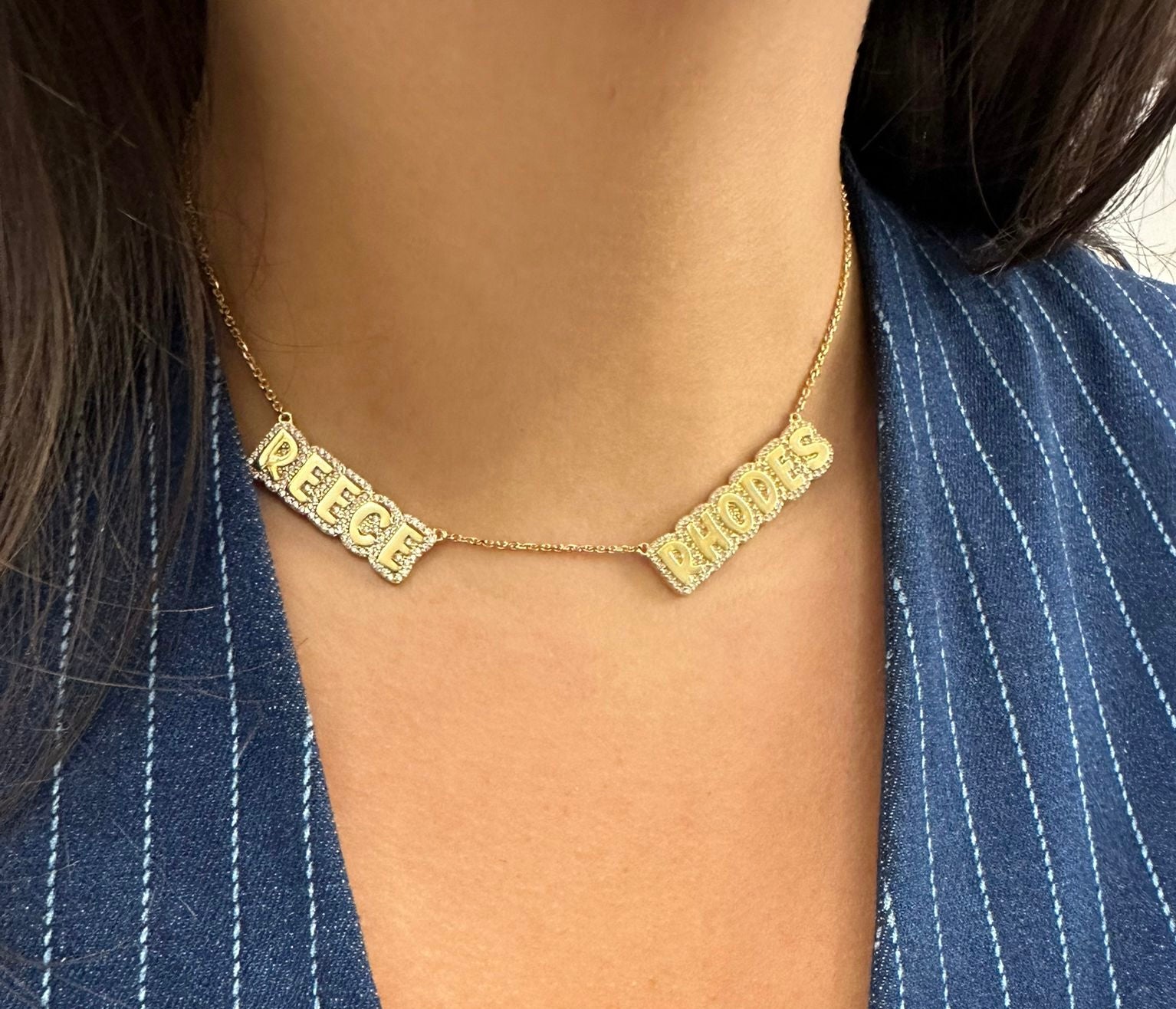 Crafted from sterling silver, this necklace guarantees lasting radiance and elegance. Elevate your neckline with a touch of personalized charm, two nameplates that showcase those you care for forever. Make a statement that's both chic and enduring