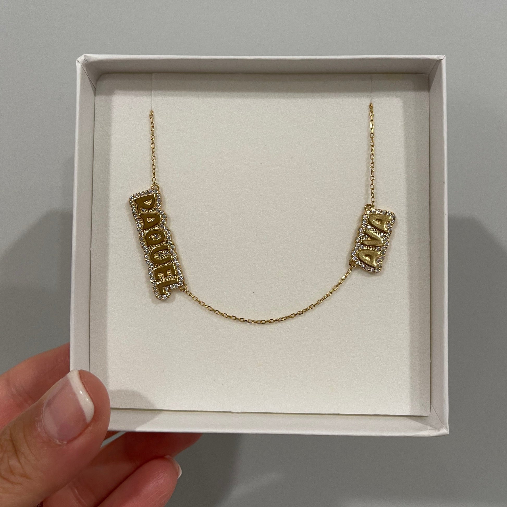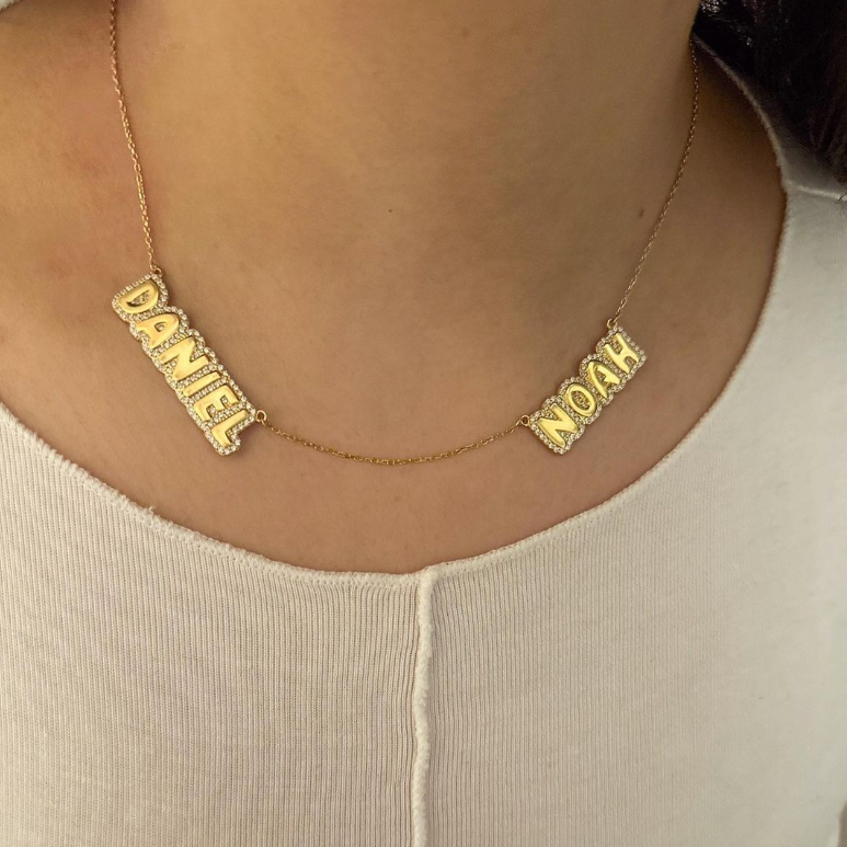 Two Name Maya Bubble CZ Nameplate Necklace