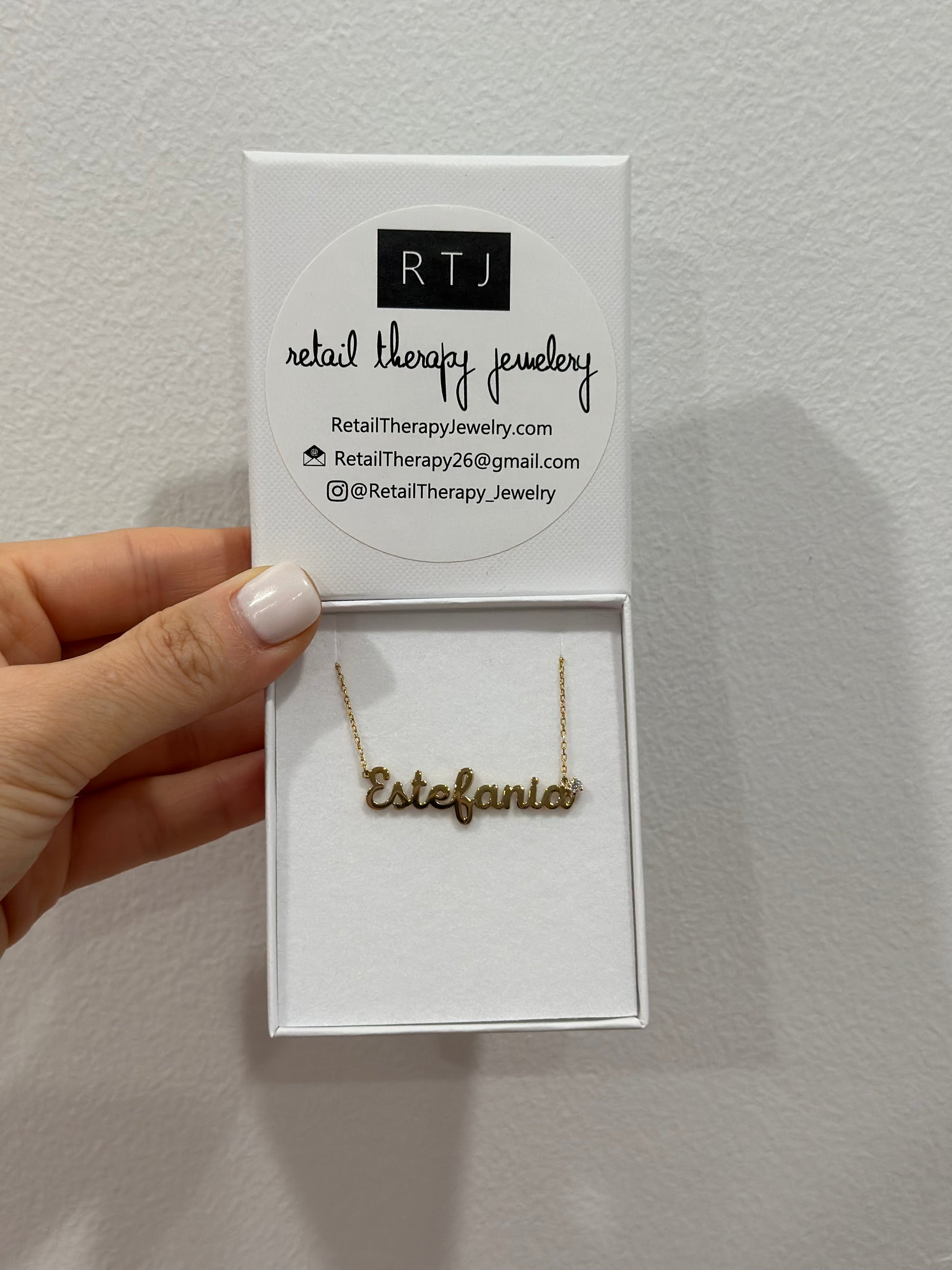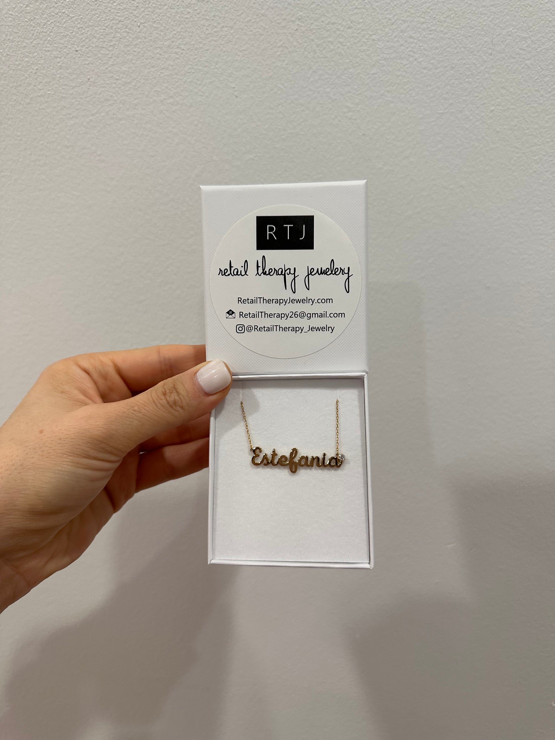 Crafted with care from high-quality sterling silver, this necklace features your nameplate in an elegant italic font, enclosed in a striking bezel design.