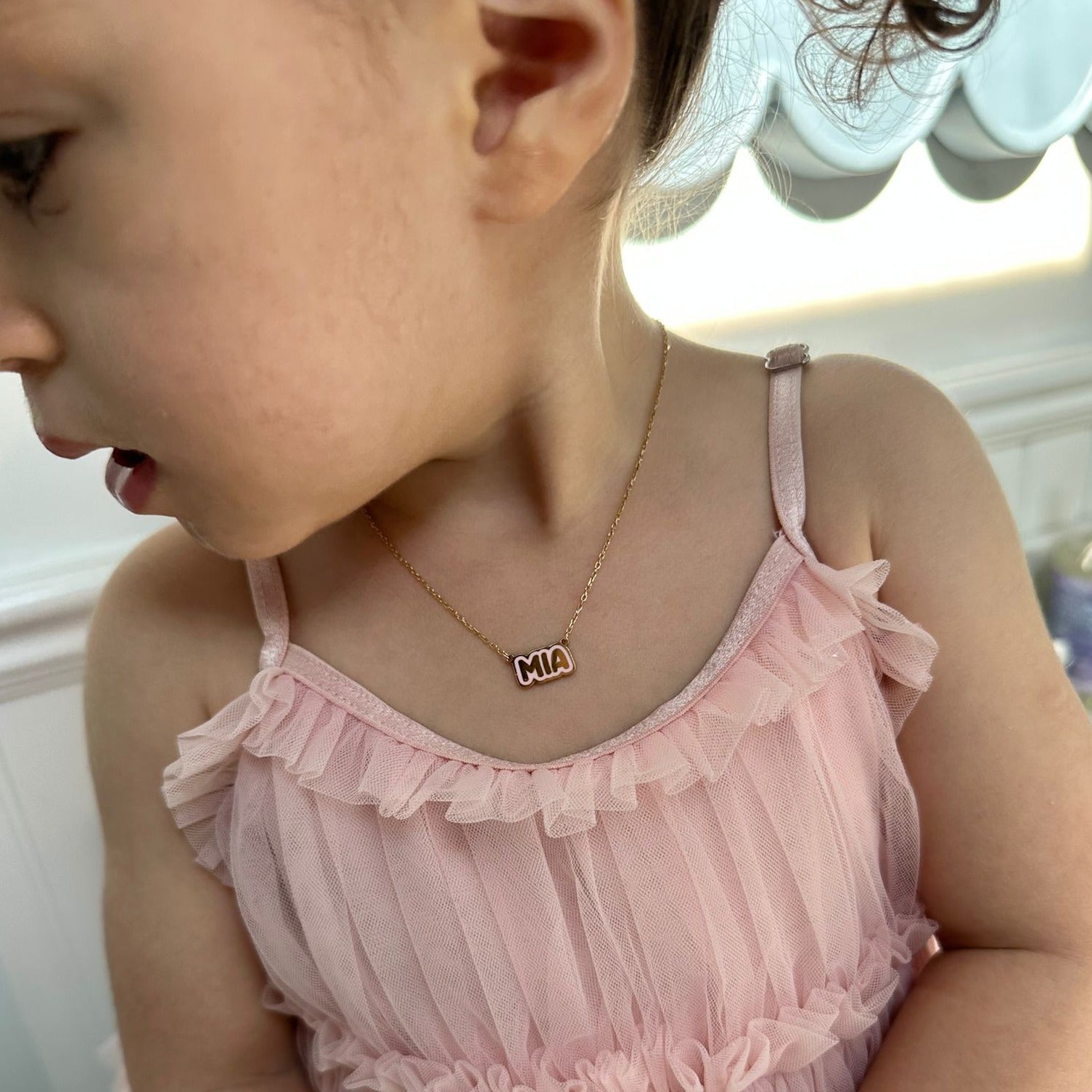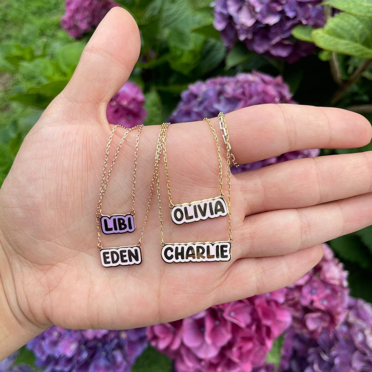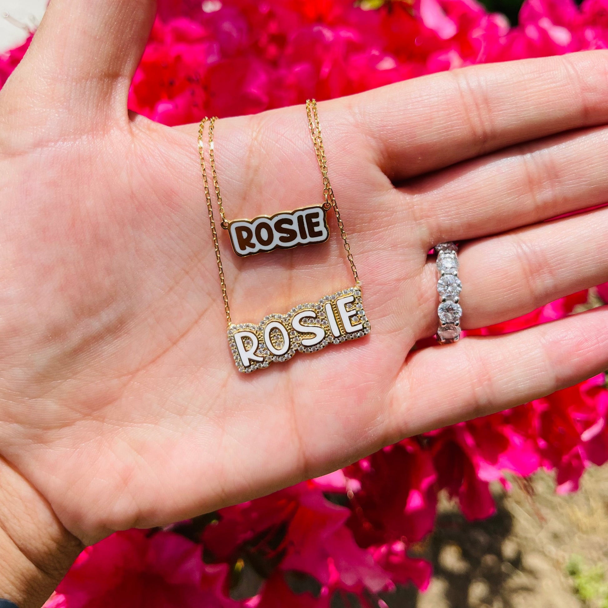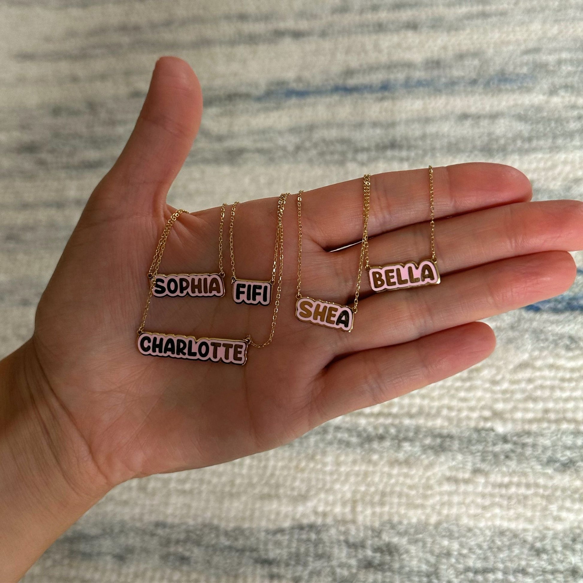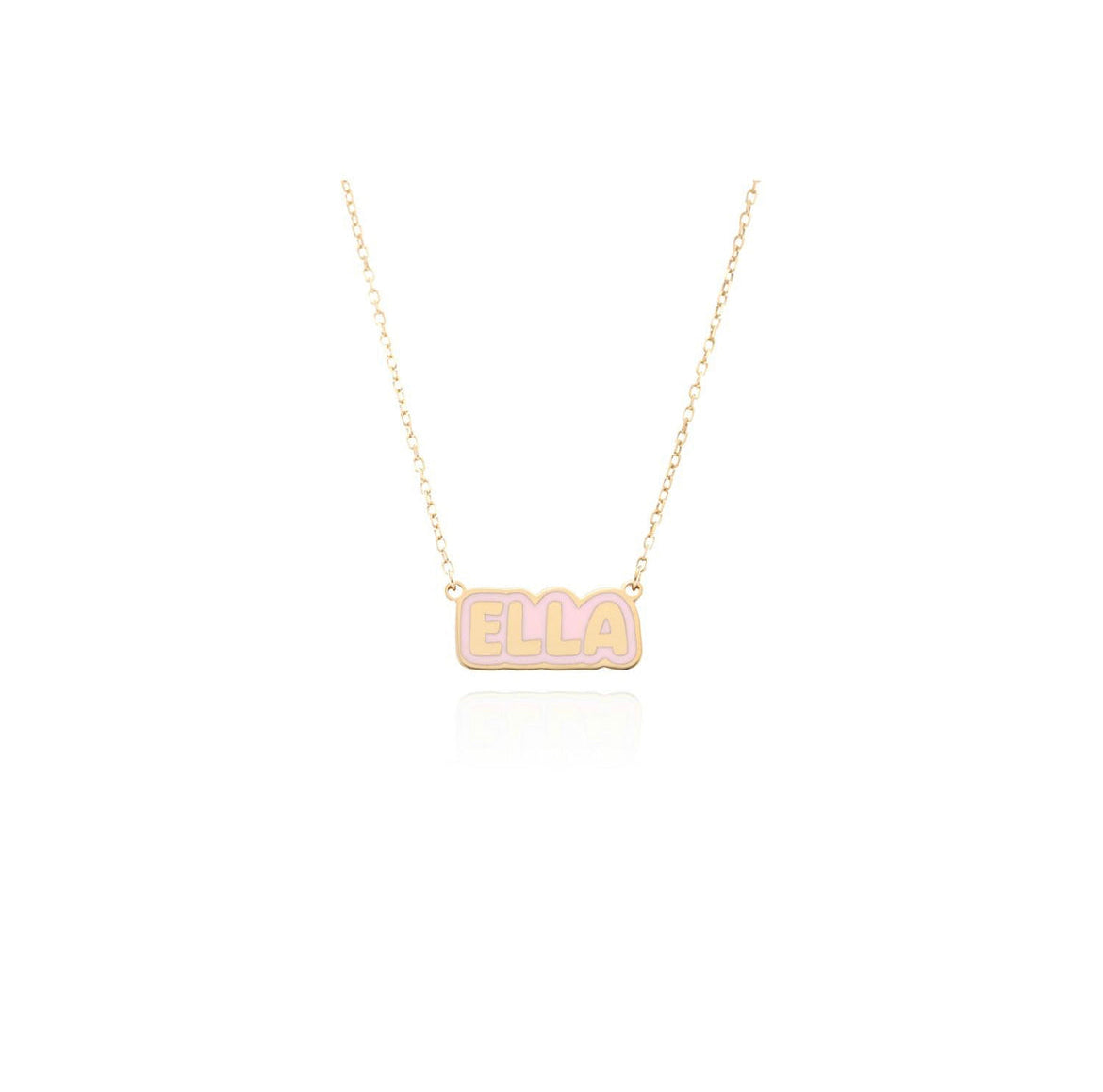 Crafted with precision and passion, this necklace features a bold bubble letter nameplate adorned with glossy scarlet enamel, making it a standout accessory. It's not just jewelry; it's a statement piece that reflects your unique style and personality.