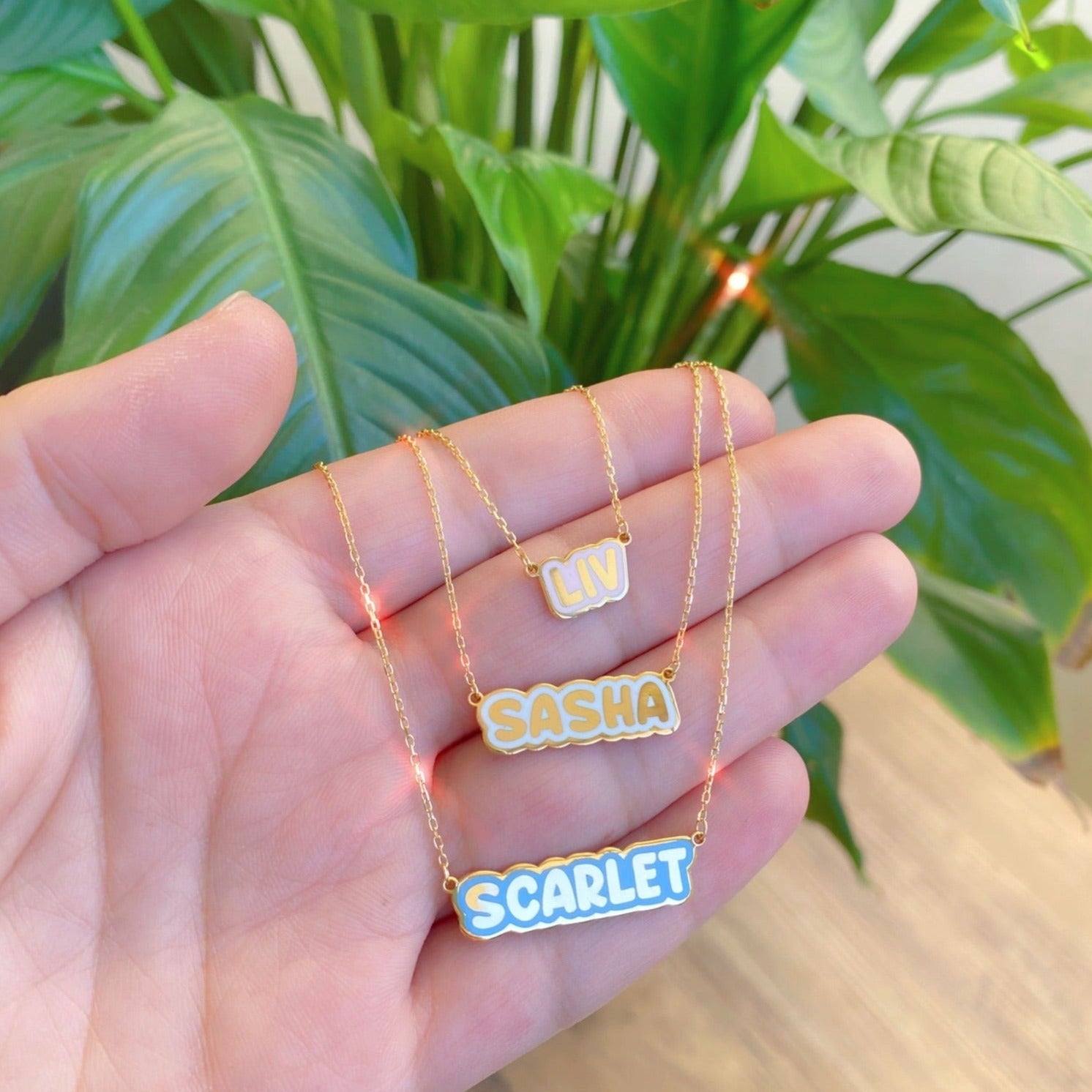 Scarlet Enamel Bubble Nameplate Necklace